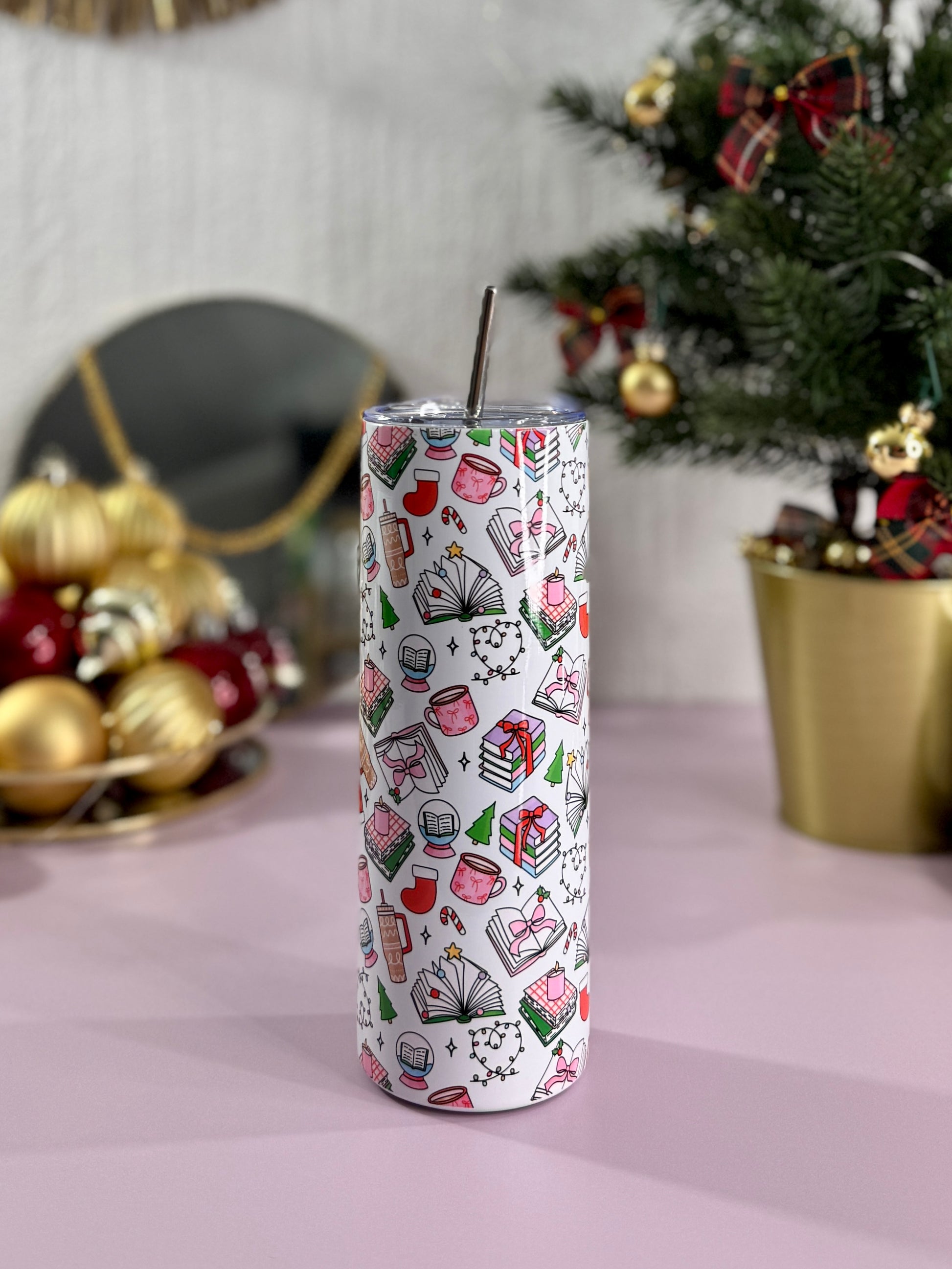 Mug Isotherme 591ml avec Couvercle et Paille - Bookish Christmas