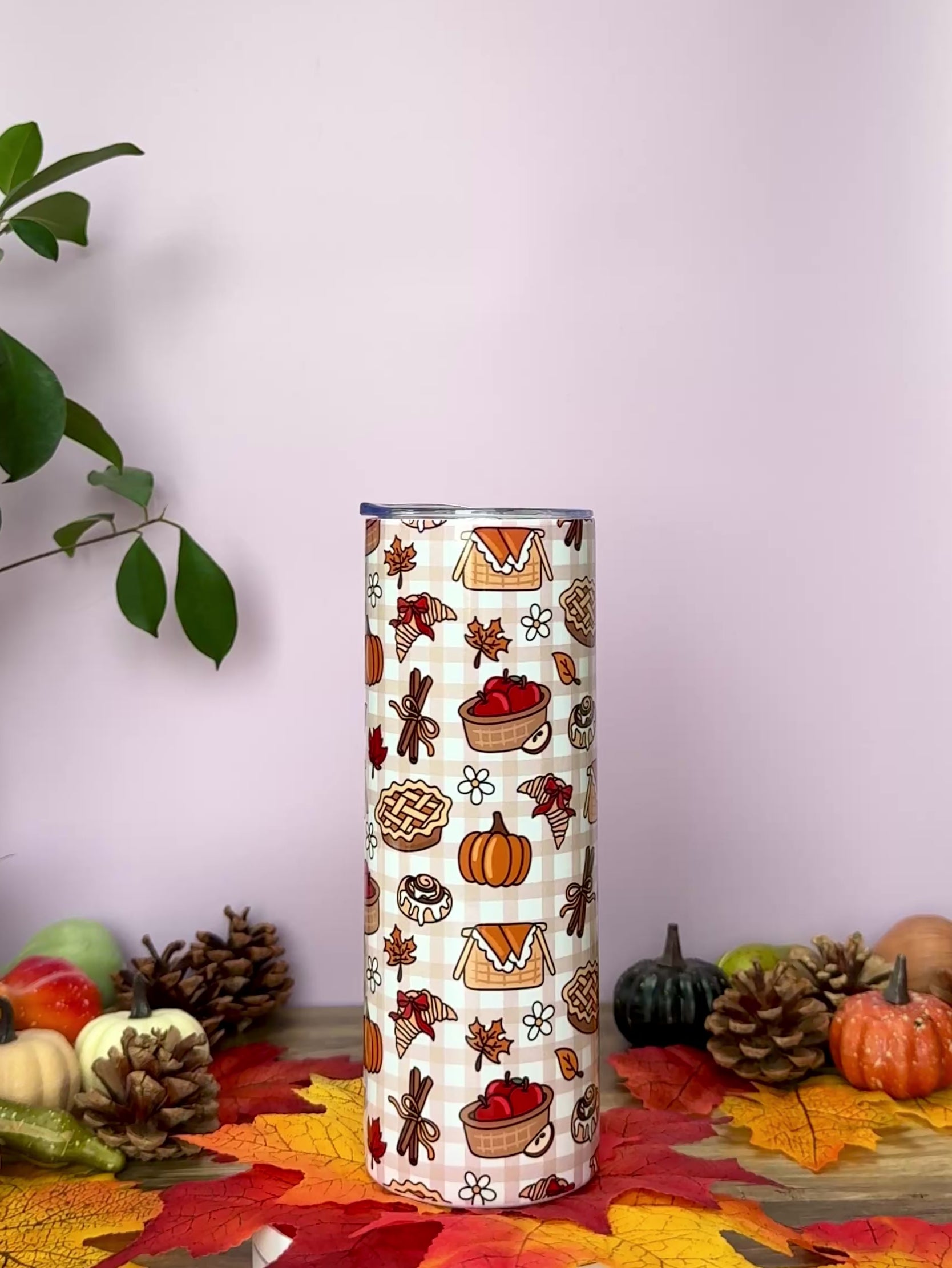 Mug Isotherme 591ml avec Couvercle et Paille - Gourmandises D'Automne