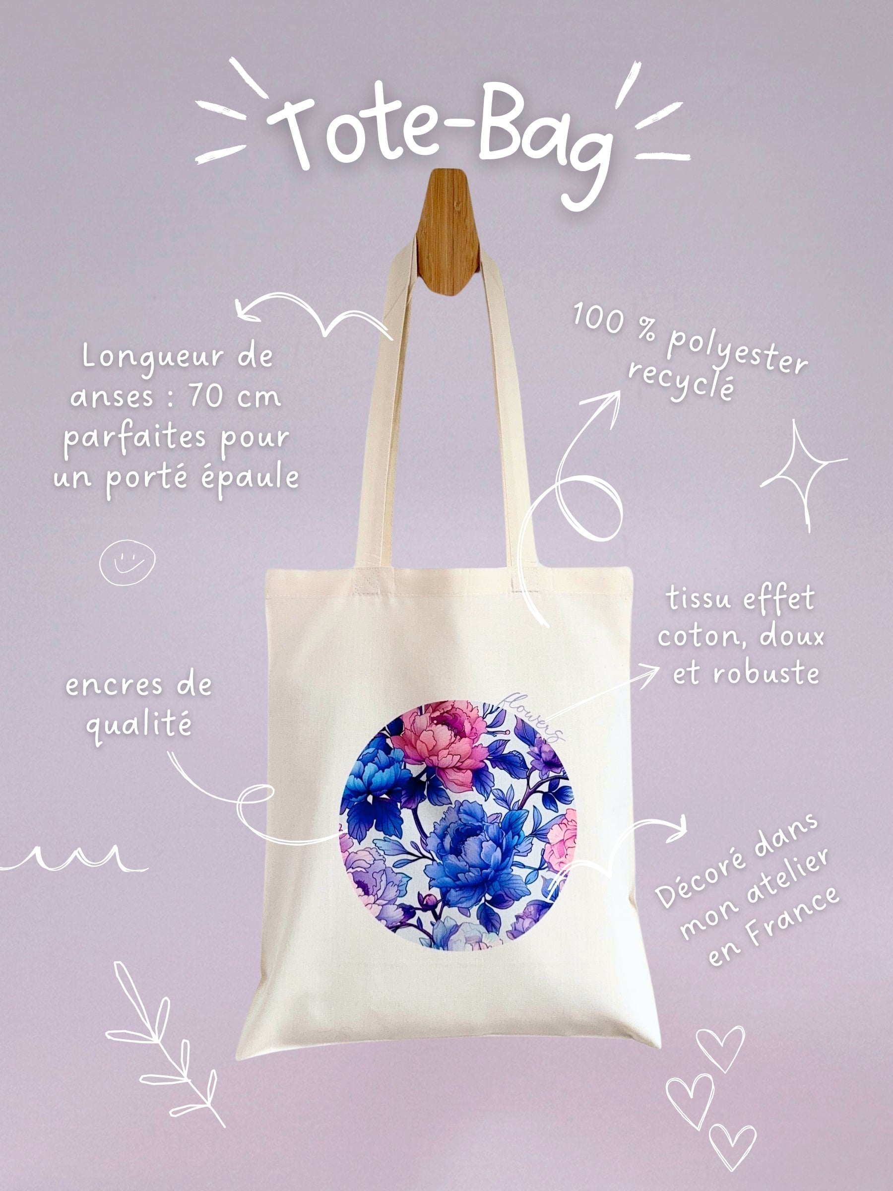 Fabriqué en polyester recyclé et décoré avec soin dans notre atelier, ce tote-bag est léger, résistant et conçu pour t’accompagner partout. Son design girly et coloré ajoute une touche de fun à toutes tes sorties.